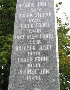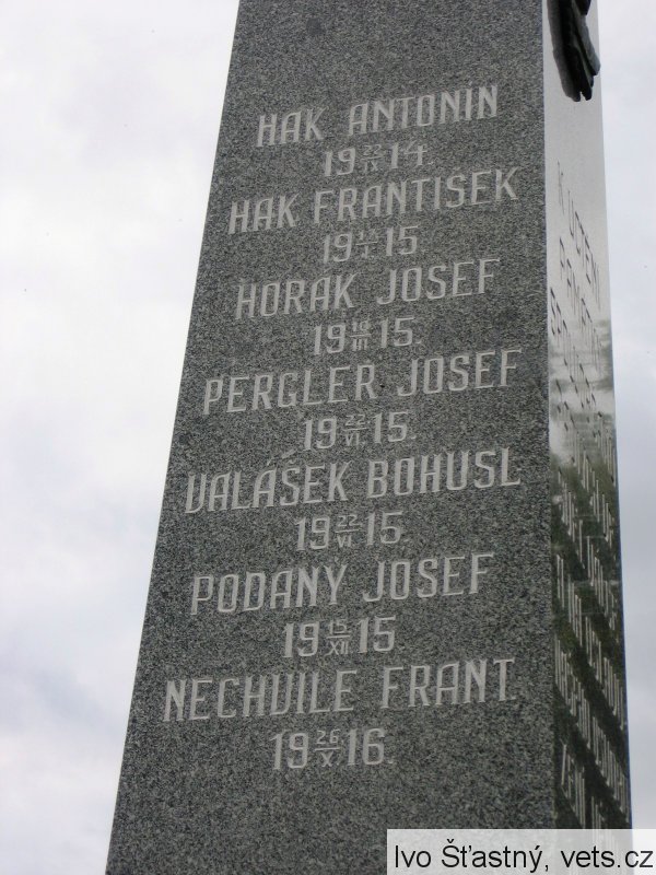 HAK ANTONÍN 22/IX 1914, HAK FRANTIŠEK 1915, HORÁK JOSEF 10/III 1915, PERGLER JOSEF 22/VI 1915, VALÁŠEK BOHUSLAV 22/VI 1915, PODANÝ JOSEF 15/XII 1915, NECHVÍLE FRANT. 26/X 1916