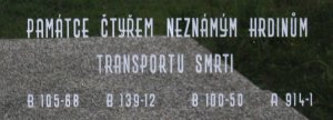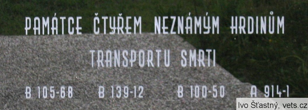 Hrob s ostatky obětí transportu smrti, který jel od Vysokého Mýta směrem na Prahu 24. ledna 1945. Z otevřených přeplněných vagónů byla na příkaz "SS" dozorců vyhazována mrtvá těla vězňů, která byla ponechána na trati. (zdroj databáze CEVH MO ČR)