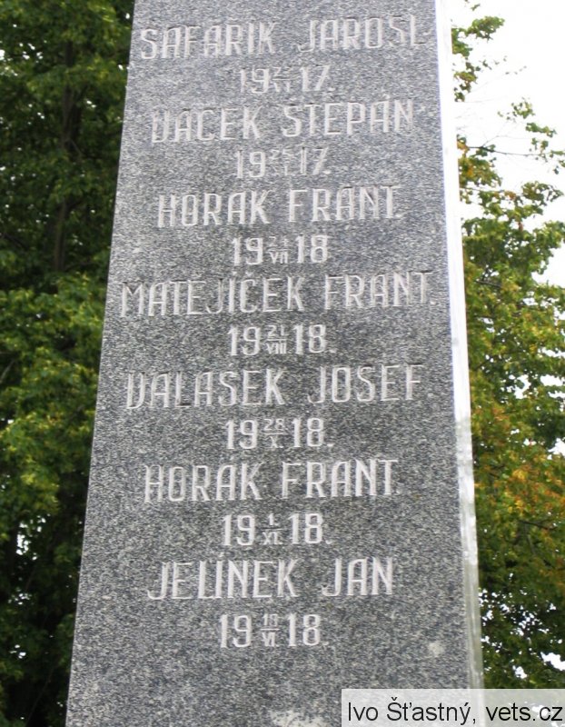 ŠAFAŘÍK JAROSL. 22/VI 1917, VACEK ŠTĚPÁN 25/XI 1917, HORÁK FRANT. 24/VII 1918, MATĚJÍČEK FRANT. 21/VIII 1918, VALÁŠEK JOSEF 28/X 1918, HORÁK FRANT. 1/XI 1918, JELÍNEK JAN 19/VI 1918