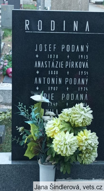 Umístění: Moravany, Čankovická, hřbitov, vlevo při výjezdu z obce směr ČankoviceJOSEF PODANÝ