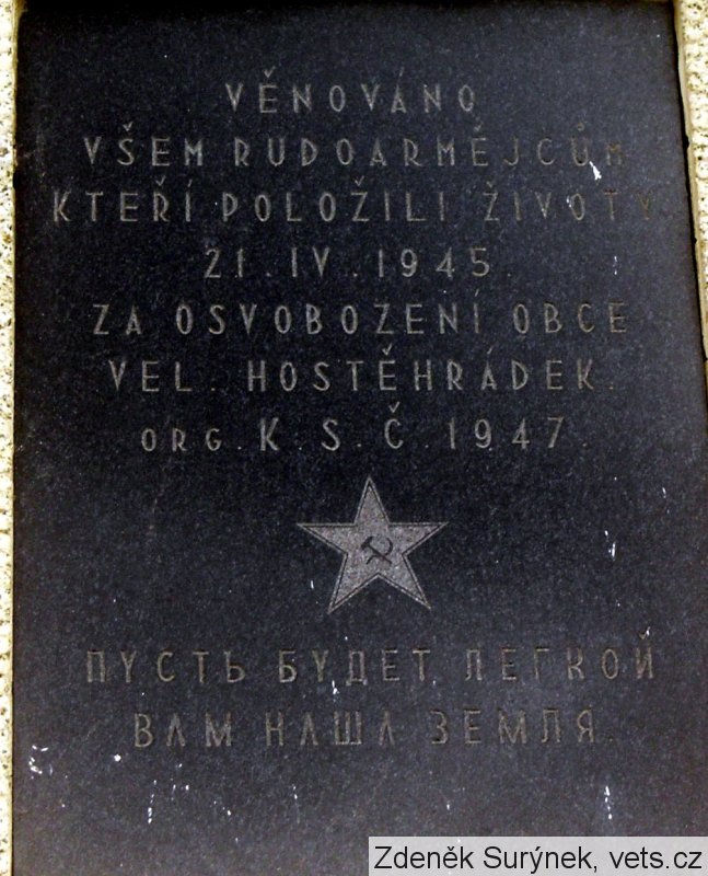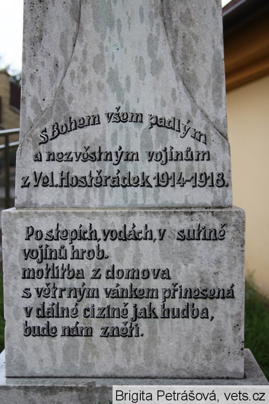 Umístění: Velké Hostěrádky, za obecním úřadem č.p. 66 u schodiště ke kosteluNápis: