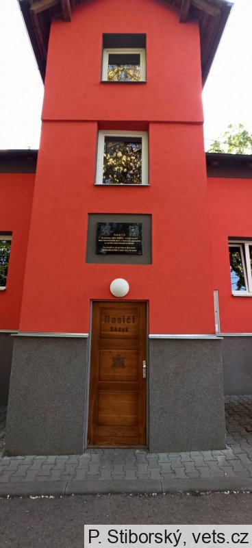 Umístění: Sádek, na čelní straně hasičské zbrojniceNápis: