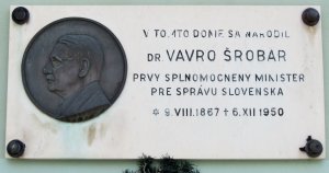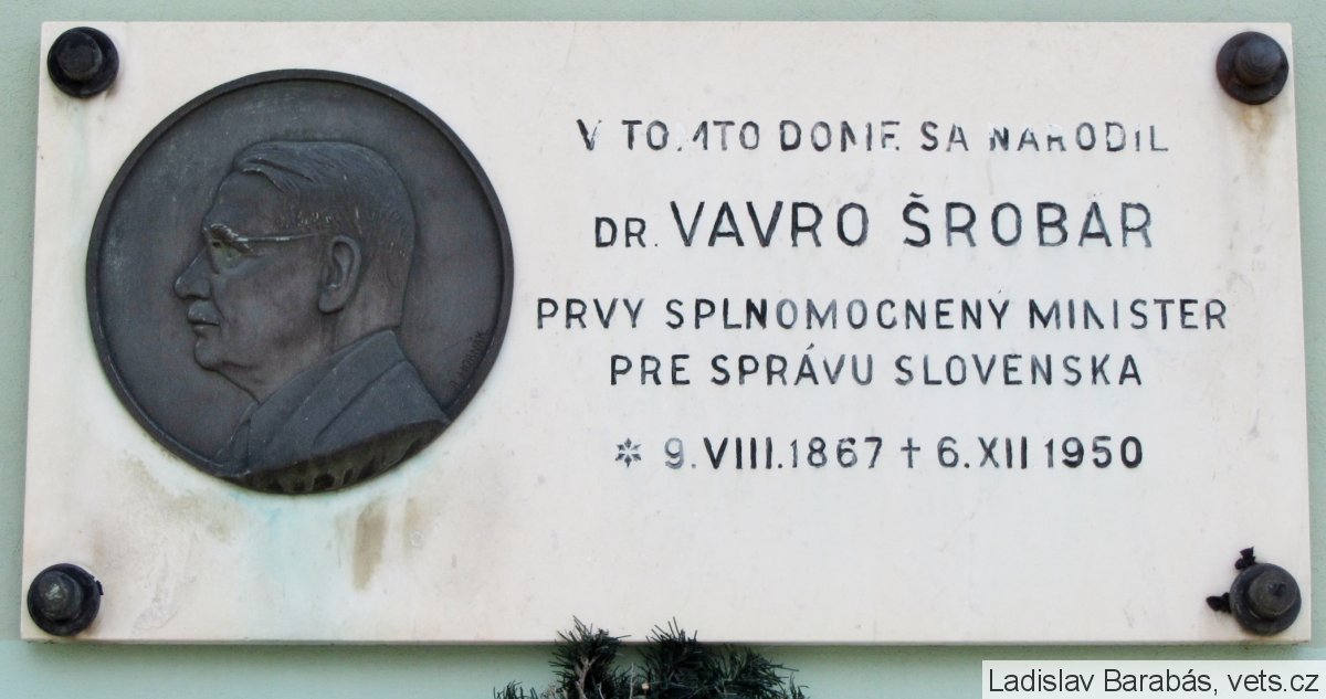 Vavro Šrobár (9.8.1867 Lisková - 6.12.1950 Olomouc, pochovaný v Bratislave) politický a verejný činiteľ, publicista a lekár. Študoval na Lekárskej fakulte v Prahe, pre svoje aktivity bol väznený v Ružomberku (1906), Segedíne (1907-08) a internovaný v Cegléde (1918). Už koncom 19. storočia udržiaval kontakty s T. G. Masarykom. V dňoch prevratu 1918 bol v Prahe, stal sa členom predsedníctva Nár. výboru čs. i rev. NZ, neskôr sa stal ministrom s plnou mocou pre správu Slovenska. Počas druhej svetovej vojny sa okolo neho sformovala odbojová skupina. Bol v styku s londýnskou exilovou vládou a nadviazal kontakt s dôstojníkmi slov. armády, nezískal však podporu vojenskej zložky odboja. V čase ústupu povstalcov ho hôr sa dostal do ZSSR a 30.1.1945 prišiel do Košíc ako člen delegácie SNR pre oslobodené územie, ako člen tejto delegácie sa zúčastnil v marci 1945 politických rokovaní v Moskve. Vyznamenania: Rad SNP I. tr., Rad republiky in memoriam (1969)