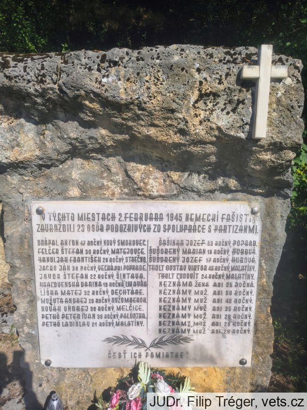 Umístění: Lisková, severovýchodne od obce na kraji lesa v časti zvanej HrusečnáV TÝCHTO MIESTACH 2. FEBRUÁRA 1945 NEMECKÍ FAŠISTI