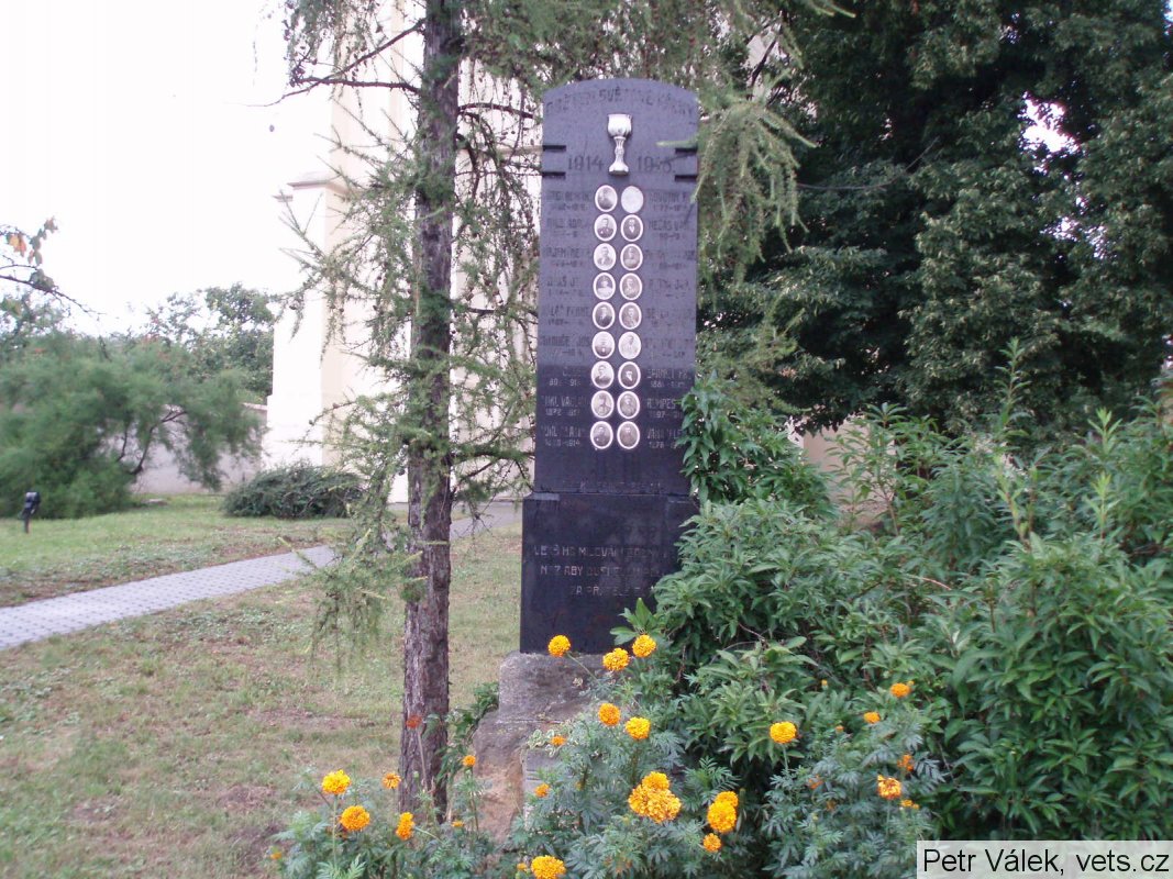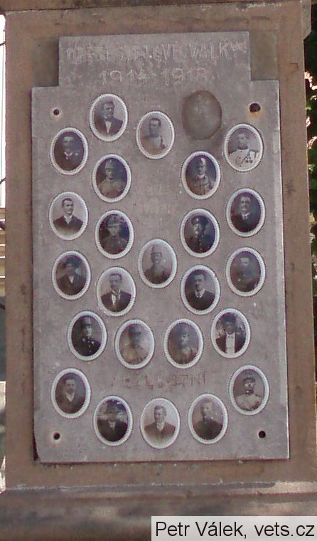 ČECHAL KAR. 1892-1919, GOLD ADOLF 1885-1914, HEJTMÁNEK F. 1889-1917, JAKŠ JAN 1874-1916, KOLÁŘ FRANT. 1887-1914, KOTOUČEK JOS. 1873-1914, LUKL JOSEF 1899-1916, LUKL VÁCLAV 1872-1917, LUKL VLADIMÍR 1888-1914 NOVOTNÝ FR. 1877-1914, NEČAS VÁCL. 1890-1915, PROCHÁZKA JOS. 1889-1914, PUTNA JAN 1881-1915, SEDLO JINDŘ. 1896-1917, SOLNIČKA KAR. 1894-1917, ŠPANIEL FR. 1881-1915, TRUMPEŠ JAR. 1897-1918, VÁŇA VILÉM 1878-1917 ZBOŘIL FRANT. 1896-1916