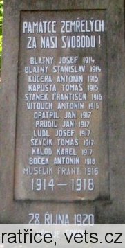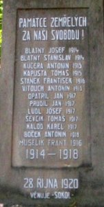 BLATNÝ JOSEF 1914, BLATNÝ STANISLAV 1914, KUČERA ANTONÍN 1915, KAPUSTA TOMÁŠ 1915, STANĚK FRANTIŠEK 1916, VITOUCH ANTONÍN 1916, OPATŘIL JAN 1917, PRUDIL JAN 1917, LUDL JOSEF 1917, ŠEVČÍK TOMÁŠ 1917, KALOD KAREL 1917, BOČEK ANTONÍN 1918, MUSELÍK FRANT. 1916
