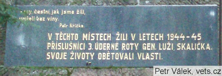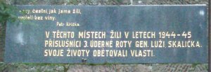 Umístění: Skalička, v místech úkrytu partyzánské skupiny, katastr obce Hluboké DvoryNápis: