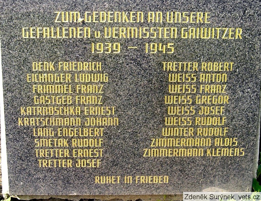 GEFALLENEN U. VERMISSTEN GAIWITZER