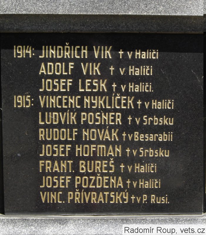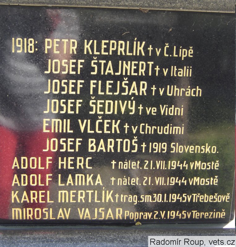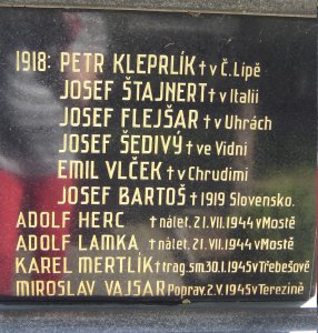 Na pomník byla dodatečně dopsána jména obětí 2. světové války.