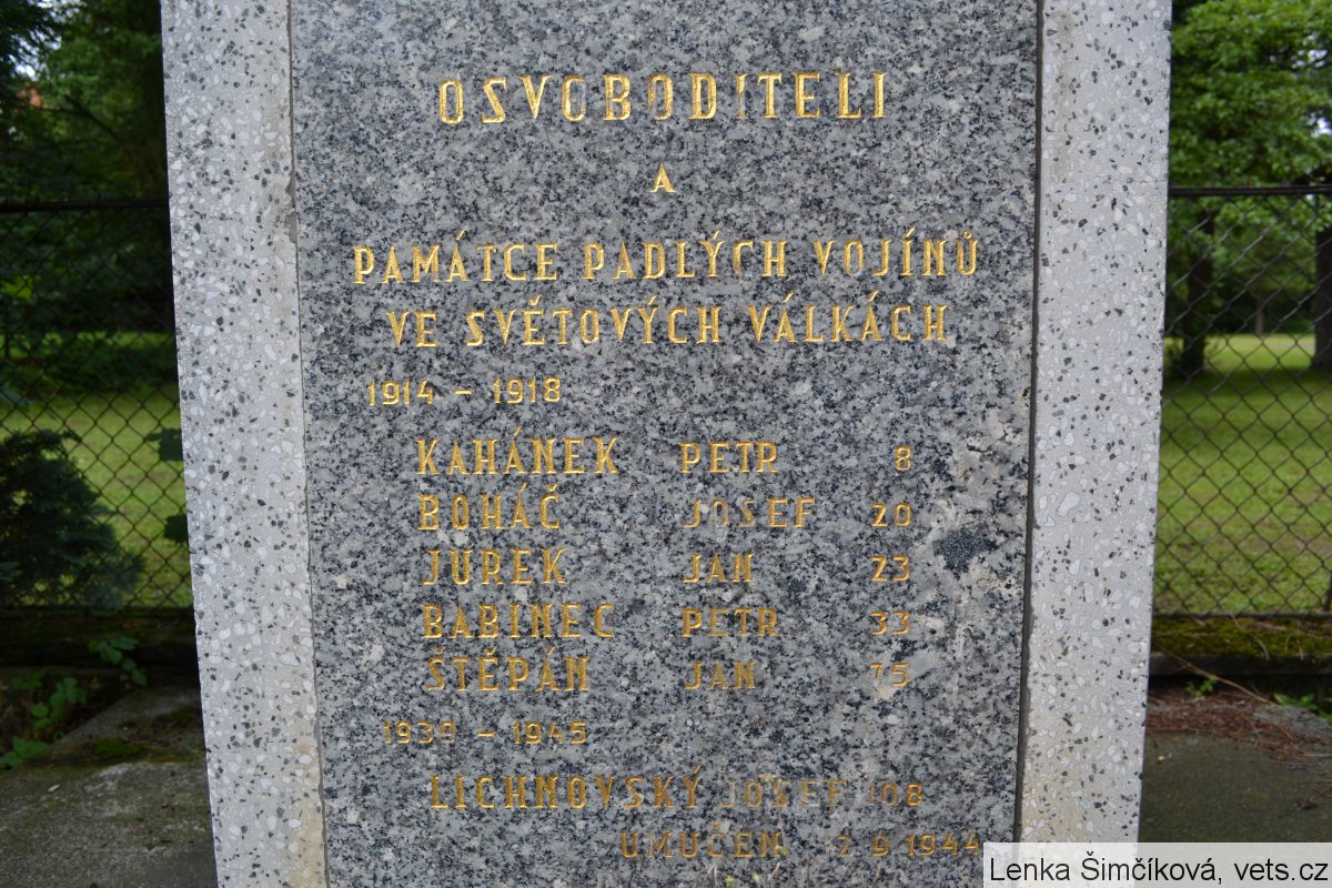 Umístění: Kopřivnice, místní část Vlčovice, v parčíku, vedle hasičské zbrojnice, u hlavní komunikaceOSVOBODITELI