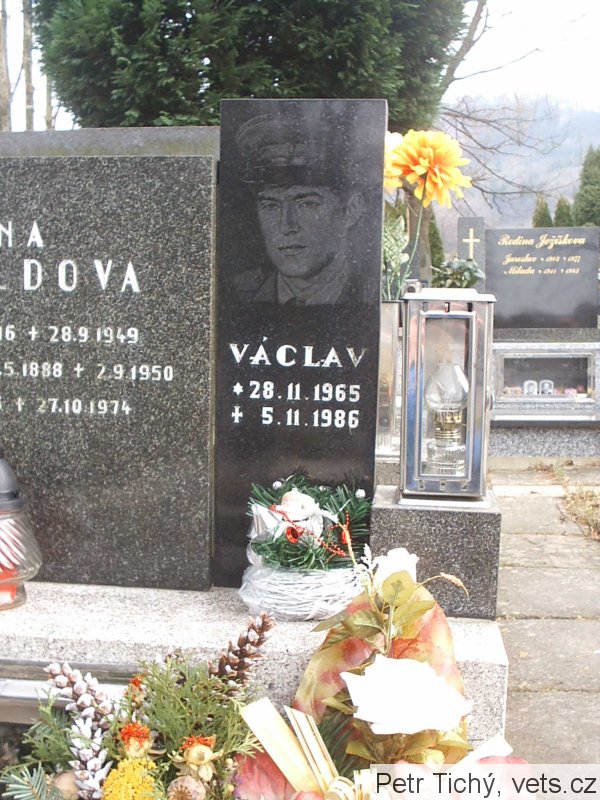 Na pomníku lept fotografie příslušníka ČSLA, pravděpodobně zahynul během základní vojenské služby.