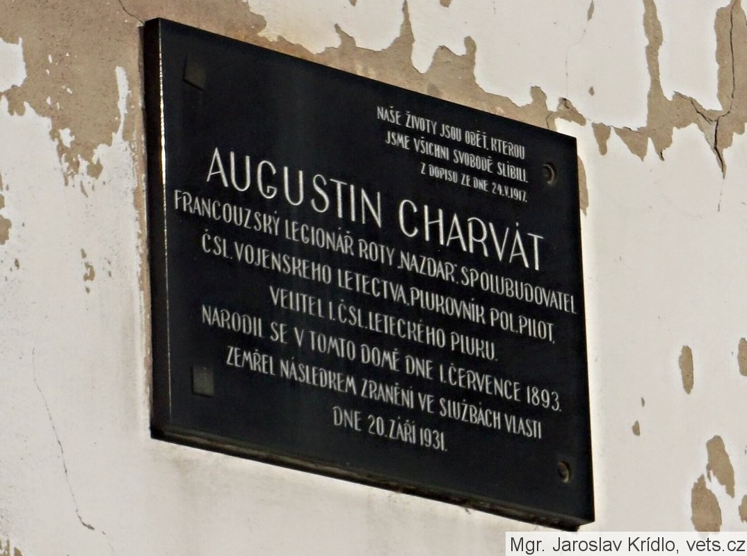 Plukovník polní pilot Augustin Charvát je velmi dobře známou postavou československého letectví. Jako jeden z prvních čs. vojenských pilotů sloužil za první světové války ve francouzském letectvu. Během války mu byl uznán jeden jistý a dva pravděpodobné sestřely. 19.9.1931 havaroval v mlze s letounem Letov Š – 16 u Útěchova, okr. Svitavy. Letadlo narazilo do kopce. A. Charvát a pozorovatel npor. Karel Brožek podlehli zranĕním, Charvát 20.9. a Brožek 27.9. Na místĕ havárie je pomník.