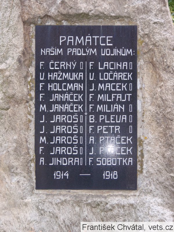 ČERNÝ F., HAŽMUKA V., HOLCMAN F., JANÁČEK F., JANÁČEK M., JAROŠ J., JAROŠ J., JAROŠ M., JAROŠ F., JINDRA A.,