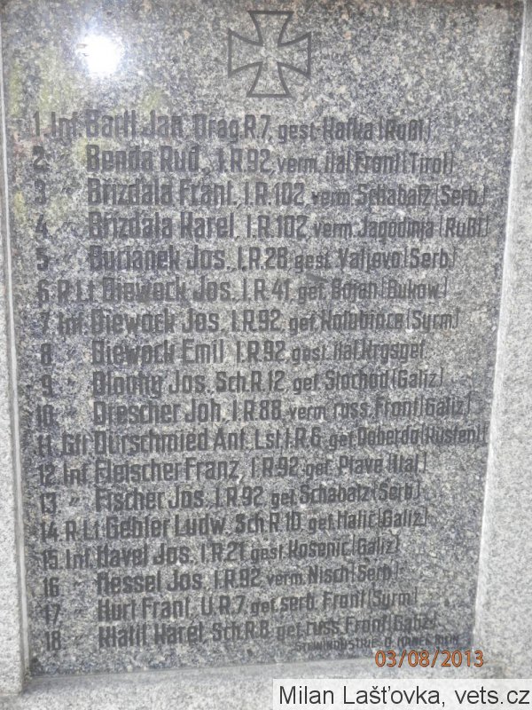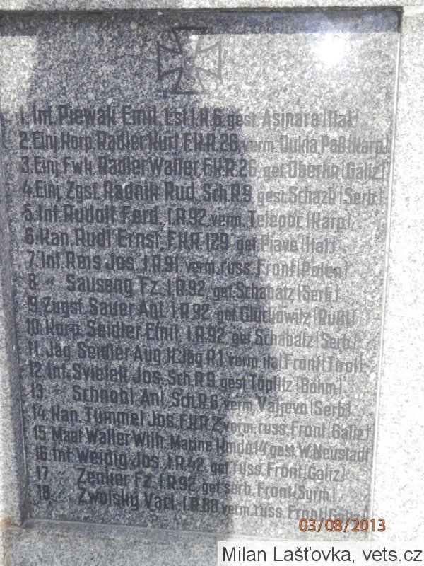 Zmíněn též na pomníku Obětem 1. světové války.