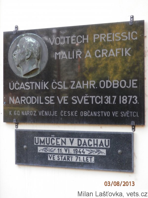 Umístění: Světec, Zámek, a zdi zámku u pravého vchodu směrem ze zámeckého nádvoříVOJTĚCH PREISSIG