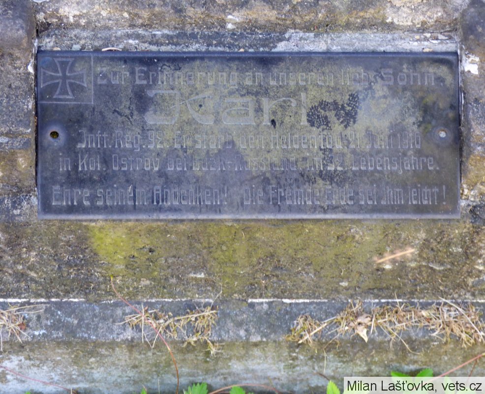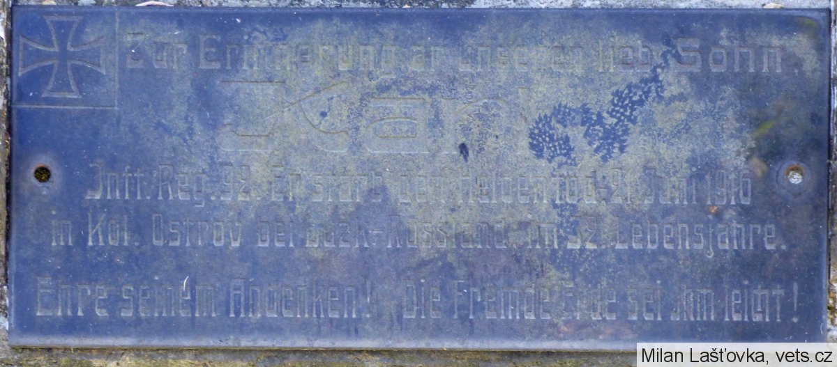 Umístění: Světec, Kostomlatská, hřbitov✠ Zur Erinnerung an unseren lieb. Sohn