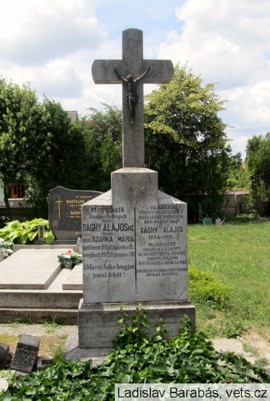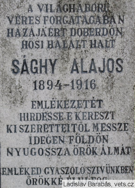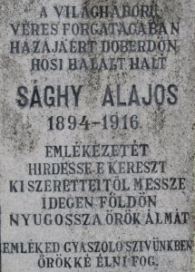Alajos Sághy je uvedený aj na pamätnej tabuli padlých v prvej svetovej vojne na dome smútku
