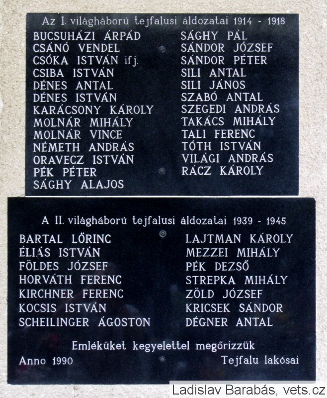 A II.világháború tejfalusi aldozátai 1939 - 1945