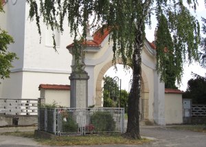Umístění: Slovenský Grob, Družstevná, pred vstupom do areálu kostola a cintorínaNápis:
