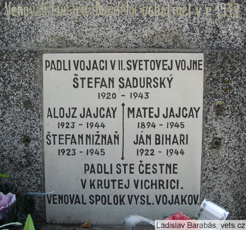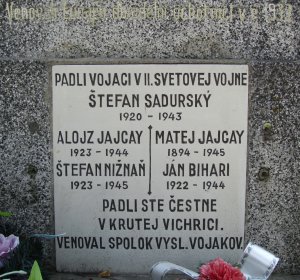 ŠTEFAN SADURSKÝ 1920 – 1943, ALOJZ JAJCAY 1923 – 1944, MATEJ JAJCAY 1894 – 1945, ŠTEFAN NIŽNAŇ 1923 – 1945, JÁN BIHARI 1922 – 1944