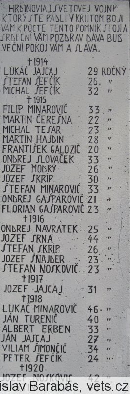 FILIP MINAROVIČ 33 ROČNÝ, MARTIN ČEREŠNA 22 ROČNÝ, MICHAL TESAR 23 ROČNÝ, MARTIN HAJDIN 28 ROČNÝ, FRANTIŠEK GALOZIČ 20 ROČNÝ, ONDREJ SLOVAČEK 33 ROČNÝ, JOZEF MODRÝ 26 ROČNÝ, JOZEF SKRÍP 30 ROČNÝ, ŠTEFAN MINAROVIČ 33 ROČNÝ, ONDREJ GAŠPAROVIČ 23 ROČNÝ
