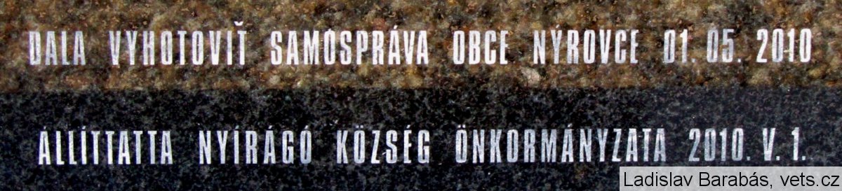 Umístění: Nýrovce, vedľa kalvínskeho kostolaNápis: