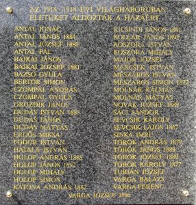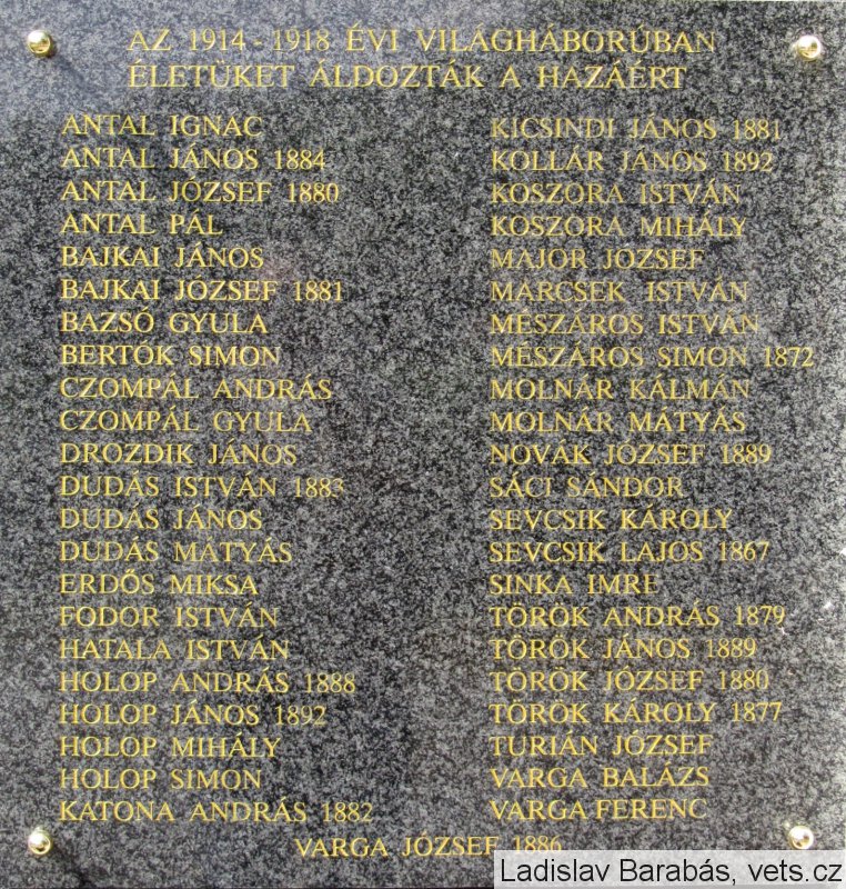 ANTAL IGNÁC, ANTAL JÁNOS 1884, ANTAL JÓZSEF 1880, ANTAL PÁL, BAJKAI JÁNOS, BAJKAI JÓZSEF 1881, BAZSÓ GYULA, BERTÓK SIMON, CZOMPÁL ANDRÁS, CZOMPÁL GYULA, DROZDIK JÁNOS, DUDÁS ISTVÁN 1883, DUDÁS JÁNOS, DUDÁS MÁTYÁS, ERDŐS MIKSA, FODOR ISTVÁN, HATALA ISTVÁN, HOLOP ANDRÁS 1888, HOLOP JÁNOS 1892, HOLOP MIHÁLY, HOLOP SIMON, KATONA ANDRÁS 1882, KICSINDI JÁNOS 1881, KOLLÁR JÁNOS 1892, KOSZORA ISTVÁN, KOSZORA MIHÁLY, MAJOR JÓZSEF, MARCSEK ISTVÁN, MÉSZÁROS ISTVÁN, MÉSZÁROS SIMON 1872, MOLNÁR KÁLMÁN, MOLNÁR MÁTYÁS, NOVÁK JÓZSEF 1889, SÁCI SÁNDOR, SEVCSIK KÁROLY, SEVCSIK LAJOS 1867, SINKA IMRE, TÖRÖK ANDRÁS 1879, TÖRÖK JÁNOS 1889, TÖRÖK JÓZSEF 1880, TÖRÖK KÁROLY 1877, TURIÁN JÓZSEF, VARGA BALÁZS, VARGA FERENC, VARGA JÓZSEF 1886