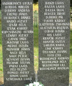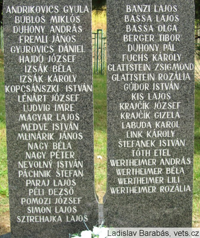 Poznámka: ANDRIKOVICS GYULA, BUBLOS MIKLÓS, DUHONY ANDRÁS, FREMLI JÁNOS, GYUROVICS DÁNIEL, HAJDÚ JÓZSEF, IZSÁK BÉLA, IZSÁK KÁROLY, KOPCSÁNSZKI ISTVÁN, LENÁRT JÓZSEF, LUDVIG IMRE, MAGYAR LAJOS, MEDVE ISTVÁN, MLINÁRIK JÁNOS, NAGY BÉLA, NAGY PÉTER, NEVOLNÝ ISTVÁN, PÁCHNIK ŠTEFAN, PARAJ LAJOS, PÉLI DEZSŐ, POMOZI JÓZSEF, SIMON LAJOS, SZTREHALKA LAJOS, BANZI LAJOS, BASSA LAJOS, BASSA OLGA, BERGER TIBOR, DUHONY PÁL, FUCHS KÁROLY, GLATTSTEIN ZSIGMOND, GLATTSTEIN ROZÁLIA, GÚDOR ISTVÁN, KIS LAJOS, KRAJČÍK JÓZSEF, KRAJČÍK GIZELA, LABUDA KAROL, LINK KÁROLY, ŠTEFANEK ISTVAN, TÓTH ETEL, WERTHEIMER ANDRÁS, WERTHEIMER BÉLA, WERTHEIMER LILI, WERTHEIMER ROZÁLIA