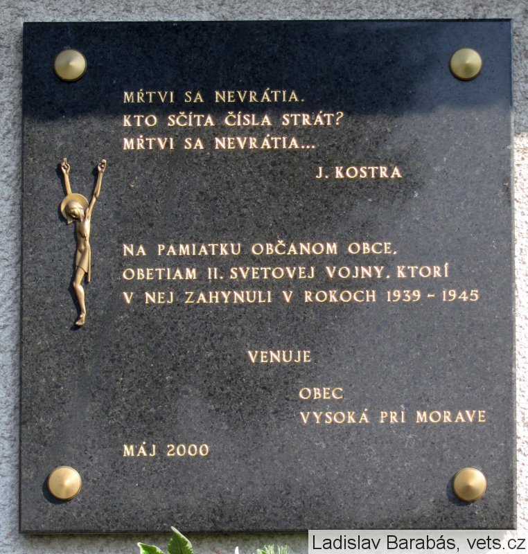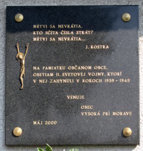 Umístění: Vysoká pri Morave, Továrenská, na dome smútku na cintoríne