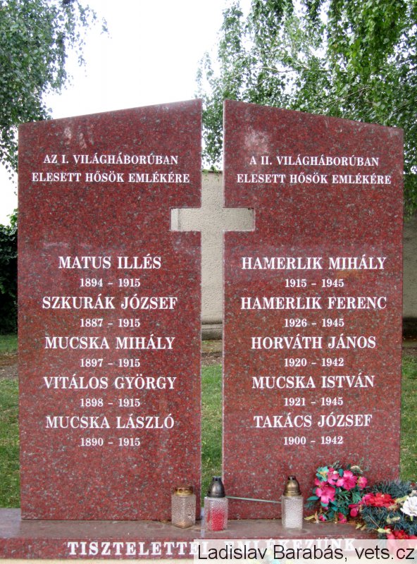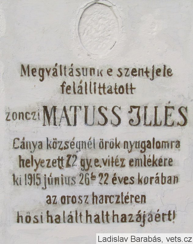 MATUS ILLÉS 1894 – 1915, SZKURÁK JÓZSEF 1887 – 1915, MUCSKA MIHÁLY 1897 – 1915, VITÁLOS GYÖRGY 1898 – 1915, MUCSKA LÁSZLÓ 1890 – 1915