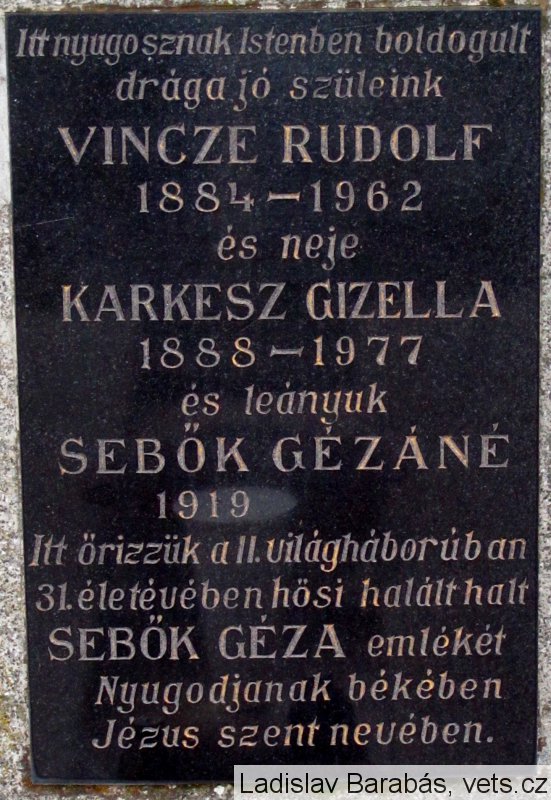 Umístění: Tureň, približne v polovici cintorína oproti kostoluNápis: