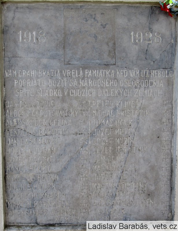 JÁN BALAŽOVIČ 1883-1916, ALBERT BRESTOVANSKÝ 1892-1914, ALEKSANDER ČELIGA 1900-1918, VENDELÍN ČERVENÝ 1882-1914, JÁN GAŠPAROVIČ 1882-1914, JOZEF GULDAN 1888-1914, JOZEF HEČKO 1891-1918, KAROL HEČKO 1887-1919, MIKULÁŠ HEČKO 1884-1927, JÚLIUS HOLEKSI 1880-1918, JOZEF HORNÁČEK 1897-1918, MARTIN HORNÁČEK 1892-1915, ALEKSANDER JELENEK 1894-1915, ŠTEFAN NÉMETY 1878-1915, PETER KLIMEŠ 1873-1916, MICHAL KRIŠTOFÍK 1873-1915, TOMÁŠ MIHÓK 1876-1917, JOZEF MUTEK 1889-1914, JOZEF MUŽÍK 1886-1914, JOZEF OSTATNIK 1889-1914, JÁN REPA 1890-1915, MARTIN SITÁR 1894-1916, JOZEF ŠTEFÁK 1895-1921, MARTIN ŠTIBRANÝ 1895-1916, PETER ŠTIBRANÝ 1879-1915, ALEKSANDER ŠTUDENC 1894-1915, JÁN VAŠEK 1882-1919,