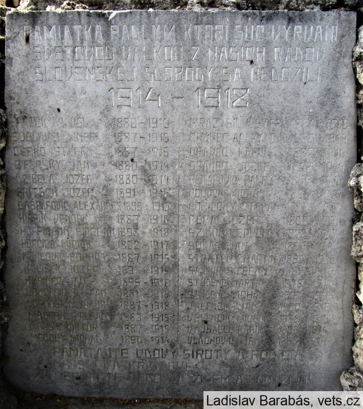 MRÁZ SILVESTER 1894-1916, ORAVEC ALEXANDER 1888-1914, ORAVEC KAROL 1882-1914, ORAVEC JOZEF 1898-1914, PEKAROVIČ PAVEL 1896-1916, POČUCH MICHAL 1886-1916, POBIECKY PAVEL 1896-1916, REPA JOZEF 1888-1914, SZIDON LEOPOLD 1878-1917, SOLÁR JÁN 1894-1916, STRATENÝ MARTIN 1896-1916, SAJMÍR ŠTEFAN 1882-1915, STUDENC MARTIN 1878-1917, STUDENC MICHAL 1897-1916, VALENČÍK JÁN 1900-1918, VALENČÍK MICHAL 1888-1916, VAJSÁBEL KAROL 1890-1914, VLACHOVIČ JÁN 1883-1914