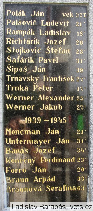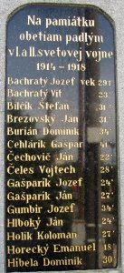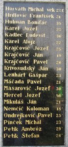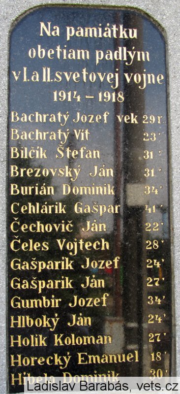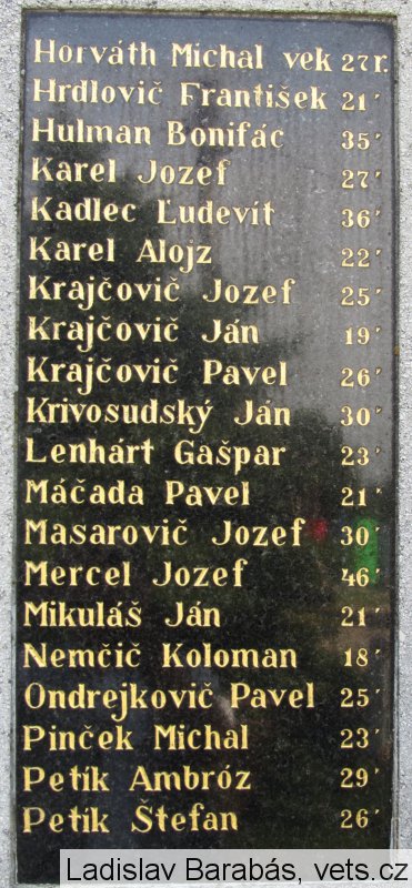 Bachratý Jozef vek 29 r., Bachratý Vít 23´, Bilčík Štefan 31´, Brezovský Ján 31´, Burián Dominik 34´, Cehlárik Gašpar 41´, Čechovič Ján 22´, Čeles Vojtech 28´, Gašparík Jozef 24´, Gašparík Ján 27´, Gumbír Jozef 34´, Hlboký Ján 24´, Holík Koloman 27´, Horecký Emanuel 18´, Híbela Dominik 30´, Híbela Augustín 19´, Híbela Vendel 24´, Krajčovič František 25´