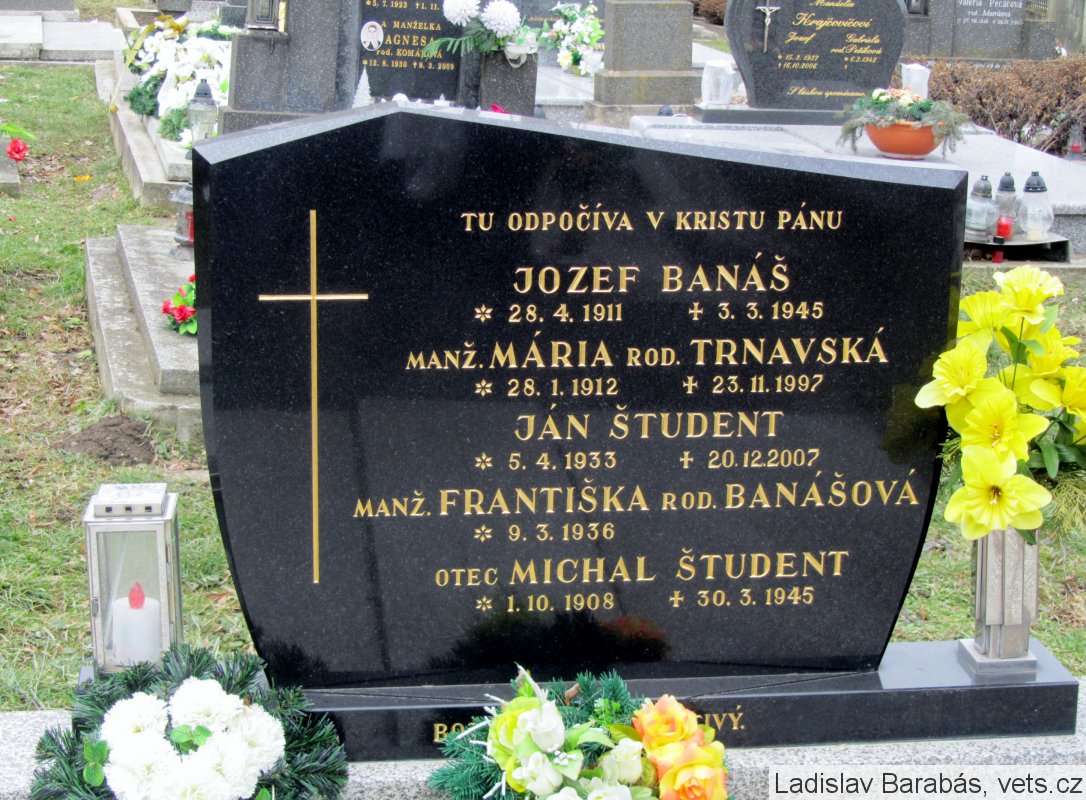 Michal Študent bol počas prechodu frontu zasiahnutý ruskou raketou v Trnave, kde je aj pochovaný.