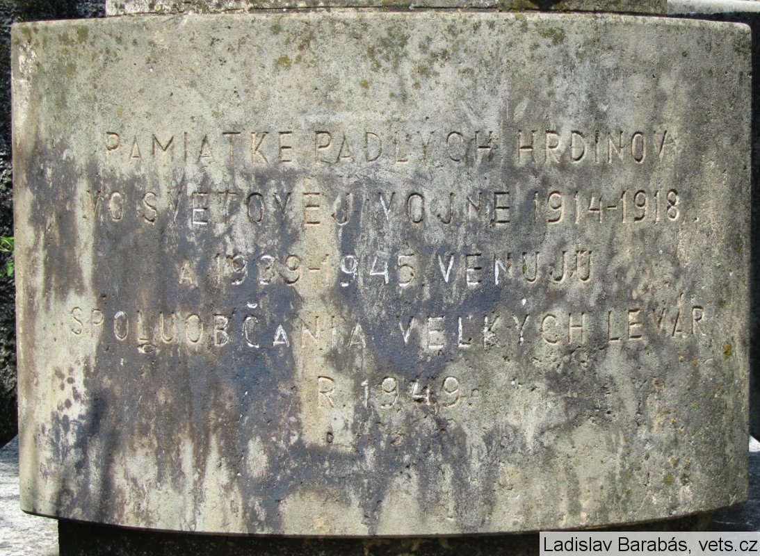 Umístění: Veľké Leváre, Štefániková, vpravo od vchodu do rím.-kat. kostola Mena Panny Márie.Nápis: