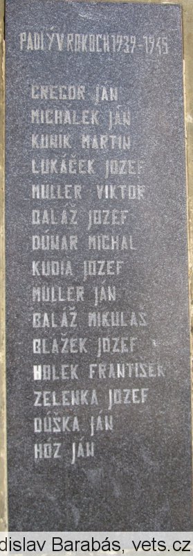 ANTAL FRANTIŠEK, BALÁŽ ANTON, BORDAČ JÁN, BOKOL ŠTEFAN, BENHAUSER ĽUDEVÍT, CACH ĽUDEVÍT, ČERMÁK JÁN, DÚNAR MARTIN, DÚŠKA JOZEF, HAFFNER ANDREJ, HOLLÝ JÁN, HOLLÝ JÁN, HRUŠOVSKÝ MATEJ, HÓZ MICHAL, HOLLÝ MICHAL, HORÁČEK JOZEF, HÍLL JÁN, HÓZ JÁN, JURKOVIČ ONDREJ, JURKOVIČ MATEJ, JURKOVIČ JOZEF, JURKOVIČ JÁN, KARÁSEK ANTÓN, KALIVODA ŠTEFAN, KOPKA JOZEF, KOVAČOVSKÝ RUDOLF, KUNA JÁN, KUNA MICHAL, KUNA JÁN, KUNA JOZEF, KAISER FERDINAND, KOHÚTEK JÁN, LONČEK JOZEF, MICHÁLEK JÁN, MURÁNYI PAVEL, MÜLLER ŠTEFAN, MÜLLER RAFAEL, PANTL VIKTOR, PAVLIŠ RAFAEL, PELLER AUGUSTÍN, ŽIŠKA PETER, PRÍBILA ŠTEFAN, PRÍBILA JÁN, RIGÁŇ PAVEL, RÚŽA JÁN, SAGLENA JÁN, SOVINEC ONDREJ, ŠÚREK ŠTEFAN, ŠÚREK JOZEF, ŠPAČEK JÁN, UHRINEC FRANTIŠEK, WALTER JOZEF, VRABLIC JÁN, VALACH JÁN, WALTER ARNOLD, ANTÓN PAVLÍK, VRABLIC MICHAL
