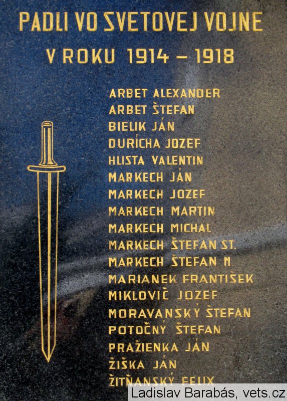 ARBET ALEXANDER, ARBET ŠTEFAN, BIELIK JÁN, DURÍCHA JOZEF, HLISTA VALENTIN, MARKECH JÁN, MARKECH JOZEF, MARKECH MARTIN, MARKECH MICHAL, MARKECH ŠTEFAN ST., MARKECH ŠTEFAN M., MARIANEK FRANTIŠEK, MIKLOVIČ JOZEF, MORAVANSKÝ ŠTEFAN, PRAŽIENKA JÁN, ŽIŠKA JÁN, ŽITŇANSKÝ FELIX