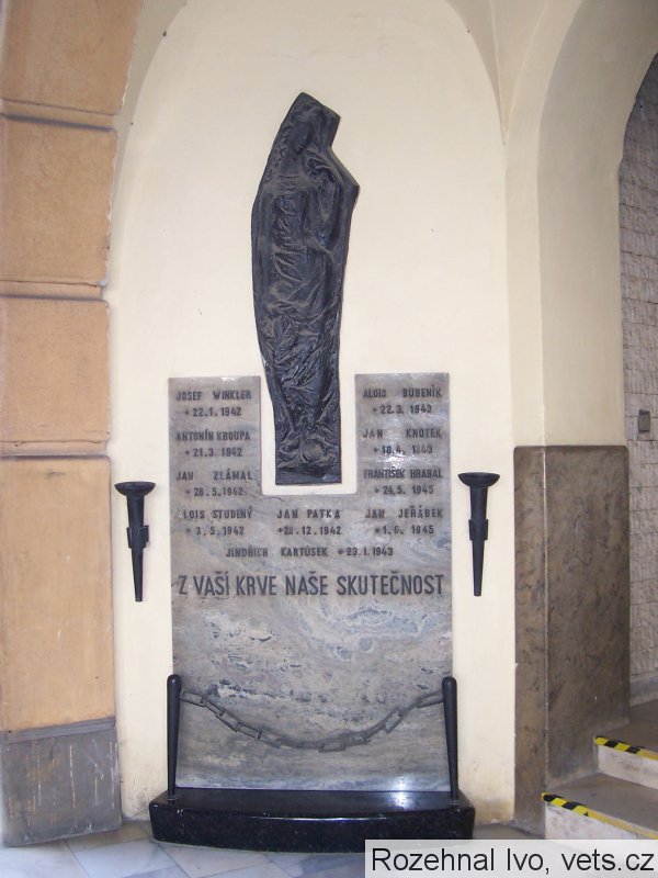 Josef Winkler + 22.1.1942 , Antonín Kroupa + 21.3.1942, Jan Zlámal + 26.5.1942, Alois Studený + 3.5. 1942, Jan Patka + 26.12.1942, Jindřich Kartůsek + 23.1.1943, Alois Bubeník + 22.3.1943, Jan Knotek + 10.4.1943, František Hrabal + 24.5.1945, Jan Jeřábek + 1.6.1945.