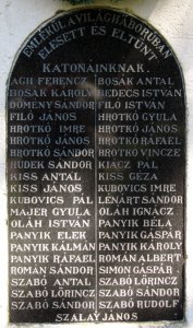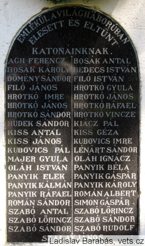 AGH FERENCZ, BOSÁK ANTAL, BOSÁK KÁROLY, BEDECS ISTVÁN, DÖMÉNY SÁNDOR, FILÓ ISTVÁN, FILÓ JÁNOS, HROTKÓ GYULA, HROTKÓ IMRE, HROTKÓ JÁNOS, HROTKÓ JÁNOS, HROTKÓ RÁFAEL, HROTKÓ SÁNDOR, HROTKÓ VINCZE, HUDEK SÁNDOR, KIÁCZ PÁL, KISS ANTAL, KISS GÉZA, KISS JÁNOS, KUBOVICS IMRE, KUBOVICS PÁL, LÉNÁRT SÁNDOR, MAJER GYULA, OLÁH IGNÁCZ, OLÁH ISTVÁN, PANYIK BÉLA, PANYIK ELEK, PANYIK GÁSPÁR, PANYIK KÁLMÁN, PANYIK KÁROLY, PANYIK RÁFAEL, ROMÁN ALBERT, ROMÁN SÁNDOR, SIMON GÁSPÁR, SZABÓ ANTAL, SZABÓ LÖRINCZ, SZABÓ LÖRINCZ, SZABÓ SÁNDOR, SZABÓ SÁNDOR, SZABÓ RUDOLF, SZALAY JÁNOS