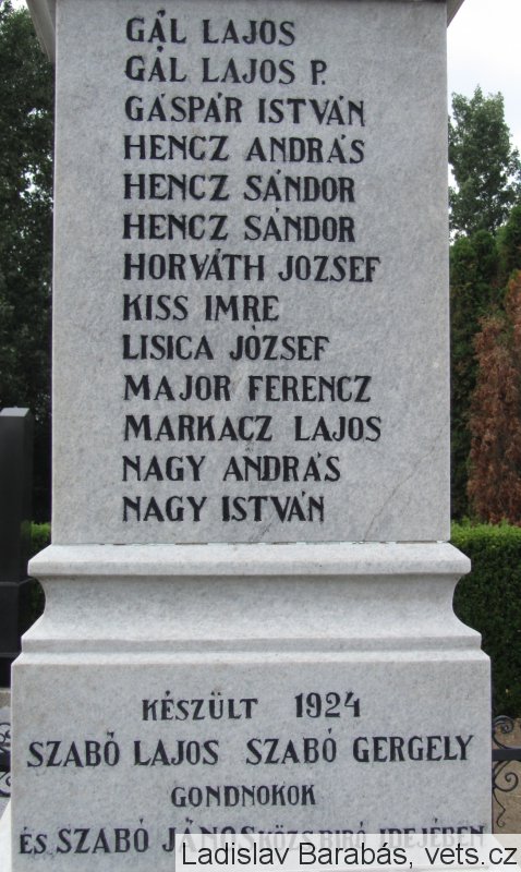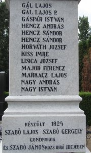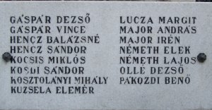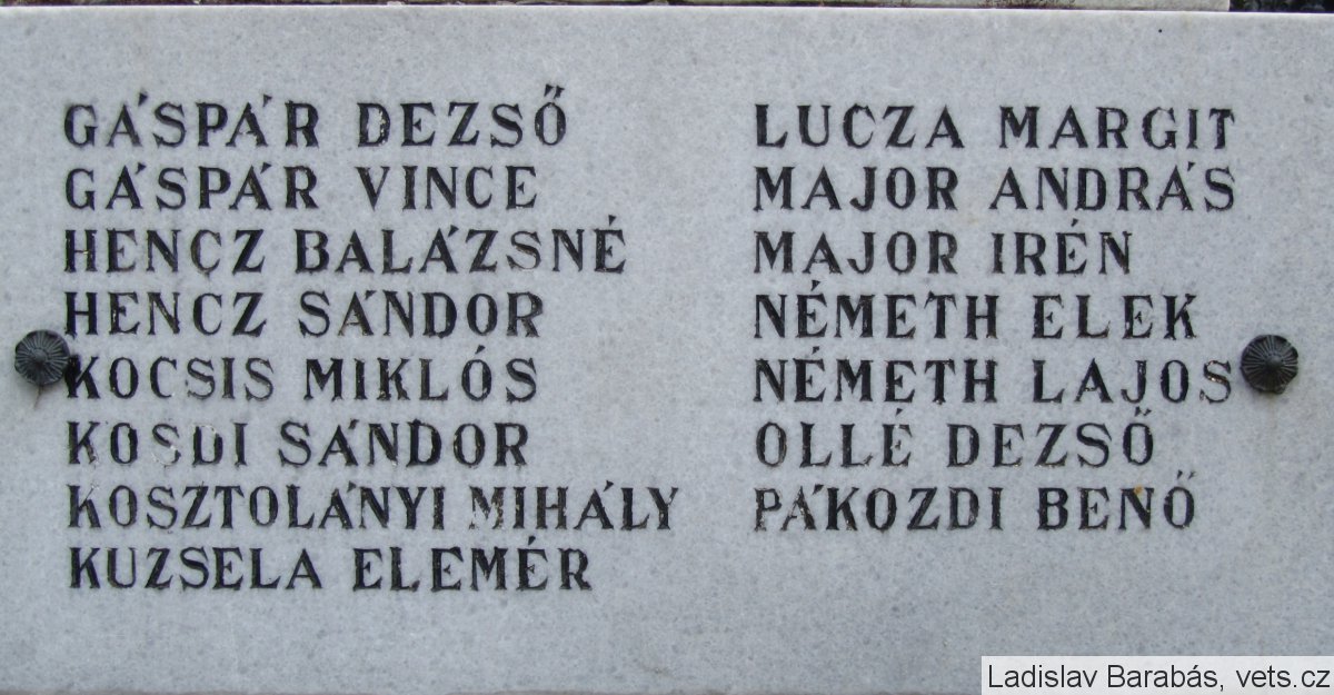 GÁL LAJOS, GÁL LAJOS P., GÁSPÁR ISTVÁN, HENCZ ANDRÁS, HENCZ SÁNDOR, HENCZ SÁNDOR, HORVÁTH JOZSEF, KISS IMRE, LISICA JÓZSEF, MAJOR FERENCZ, MARKACZ LAJOS, NAGY ANDRÁS, NAGY ISTVÁN