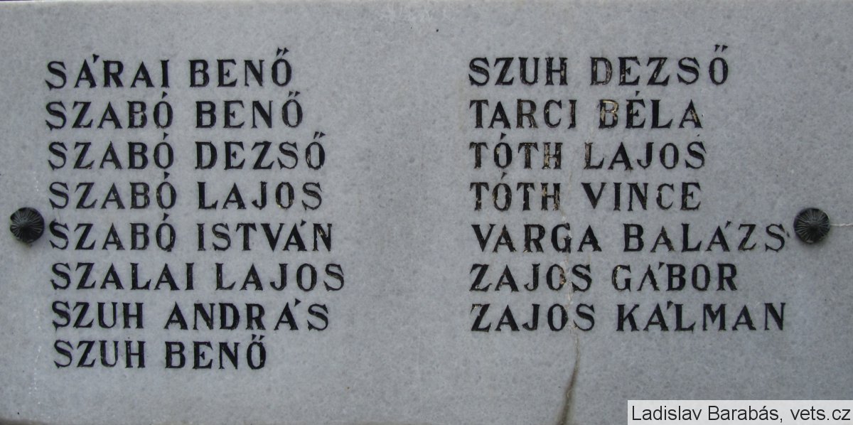 SÁRAI BENŐ, SZABÓ BENŐ, SZABÓ DEZSŐ, SZABÓ LAJOS, SZABÓ ISTVÁN, SZALAI LAJOS, SZUH ANDRÁS, SZUH BENŐ, SZUH DEZSŐ, TARCI BÉLA, TÓTH LAJOS, TÓTH VINCE, VARGA BALÁZS, ZAJOS GÁBOR, ZAJOS KÁLMÁN