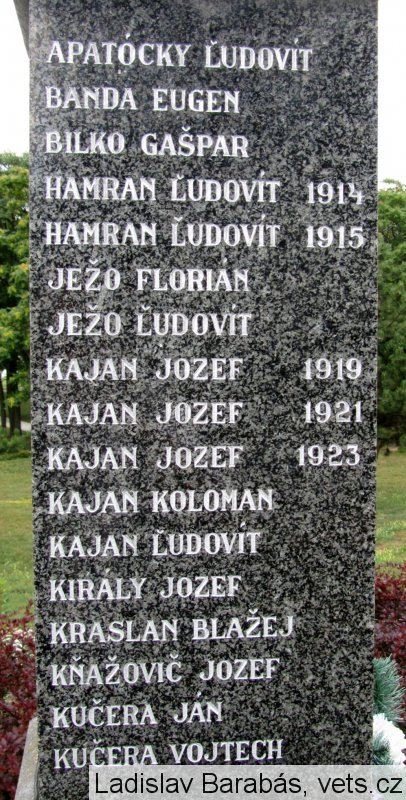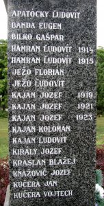 APATÓCKY ĽUDOVÍT, BANDA EUGEN, BILKO GAŠPAR, HAMRAN ĽUDOVÍT 1914, HAMRAN ĽUDOVÍT 1915, JEŽO FLORIÁN, JEŽO ĽUDOVÍT, KAJAN JOZEF 1919, KAJAN JOZEF 1921, KAJAN JOZEF 1923, KAJAN KOLOMAN, KAJAN ĽUDOVÍT, KIRÁLY JOZEF, KRASLAN BLAŽEJ, KŇAŽOVIČ JOZEF, KUČERA JÁN, KUČERA VOJTECH