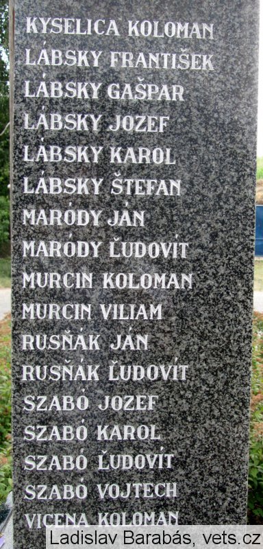 KYSELICA KOLOMAN, LÁBSKY FRANTIŠEK, LÁBSKY GAŠPAR, LÁBSKY JOZEF, LÁBSKY KAROL, LÁBSKY ŠTEFAN, MARÓDY JÁN, MARÓDY ĽUDOVÍT, MURCIN KOLOMAN, MURCIN VILIAM, RUSŇÁK JÁN, RUSŇÁK ĽUDOVÍT, SZABÓ JOZEF, SZABÓ KAROL, SZABÓ ĽUDOVÍT, SZABÓ VOJTECH, VICENA KOLOMAN