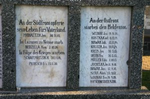 BENNA JOSEF 1916-1943, BITOMSKY JULIN 1918-1944, BOLACZKY JOHANN 1908-1945, BORUNSKY AUGUST 1907-1943, BORUNSKY BERNARD 1920-1944, BORUNSKY GÜNTER 1923-1945, BRUKSCH HERBERT 1921-1942, BŘESKA JOSEF 1913-1943, DEMEL RICHARD 1908-1945, DUBEC PAUL 1913-1945, FITZEK LEO 1927-1945, GEBAUER LEO 1920-1942, GOLD JOSEF 1920-1945, GOLD WILHELM 1918-1945, GRATZA HEINRICH 1926-1944, GRATZA JOHANN 1914-1942, GRZONKA JOHANN 1886-1945, HAHN JOHANN 1915-1944, HEINDRICH FRANZ 1922-1945, HEINDRICH JOSEF 1921-1945, HEINDRICH VIKTOR 1919-1943, HINZ HERBERT 1916-1941, JANOTTA JOHANN 1920-1945, JUCHELKA GERHARD 1921-1942, JURTZEK MAXMILIAN 1929-1945, KALUŽA GERHARD 1921-1944, KALUŽA JOHANNES 1923-1943, KAMRADEK MAXMILIAN 1923-1942, KAMRADEK THOMAS 1900-1945