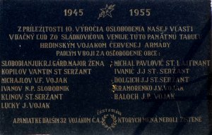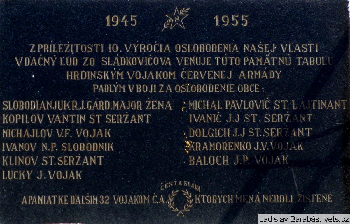 VĎAČNÝ ĽUD ZO SLÁDKOVIČOVA VENUJE TÚTO PAMÄTNÚ