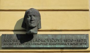 Andrej Sládkovič (pôv. Braxatoris) (30.3.1820 Krupina – 20.4.1872 Banská Bystrica-Radvaň) básnik a evanjelický kňaz. Od mladosti bol aktívny účastník národného spolkového života. Po príchode do Bratislavy patril k aktívnym členom Štúrovej družiny. V roku 1849 bol za podporu slovenského povstania na úteku zaistený maďarskými gardistami a poľným vojenským súdom odsúdený na trest smrti. Vykonaniu rozsudku zabránil len rýchly postup vojsk J. Jelačića. V dňoch 6. a 7.6.1861 sa zúčastnil memorandového zhromaždenia Matice slovenskej v Martine.
