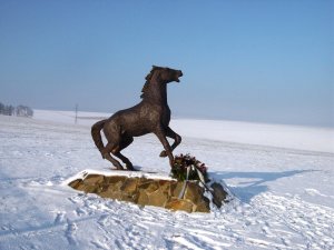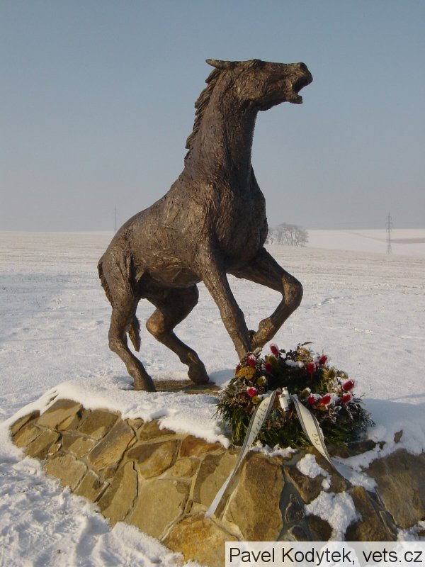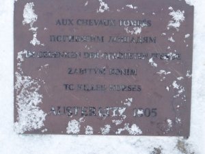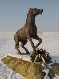 Pomník věnovaný koním, padlým v bitvě u Slavkova (1805) vytvořil sochař Nikos Armutidis. Odhalen 15.8.2010