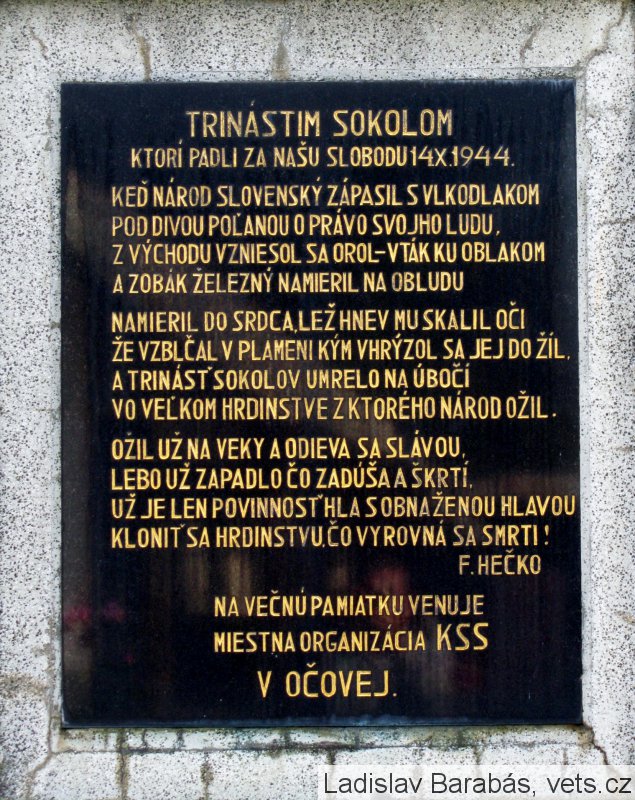 Umístění: Očová, SNP 330/110, vpravo od vchodu do budovy Obecného úradu Očová