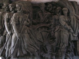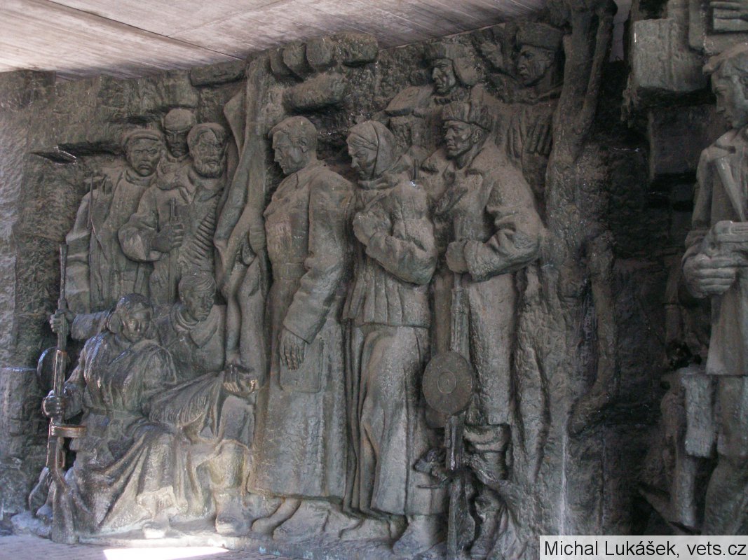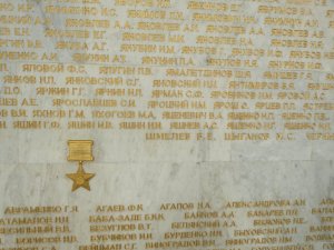 V podstavci pod sochou Matky vlasti je kulatý sál vyložený bílým mramorem, do kterého jsou zlatým písmem vytesána jména všech Hrdinů Sovětského svazu. Tisíce jmen, mj. jména Ludvíka Svobody, Otakara Jaroše a Antonína Sochora.